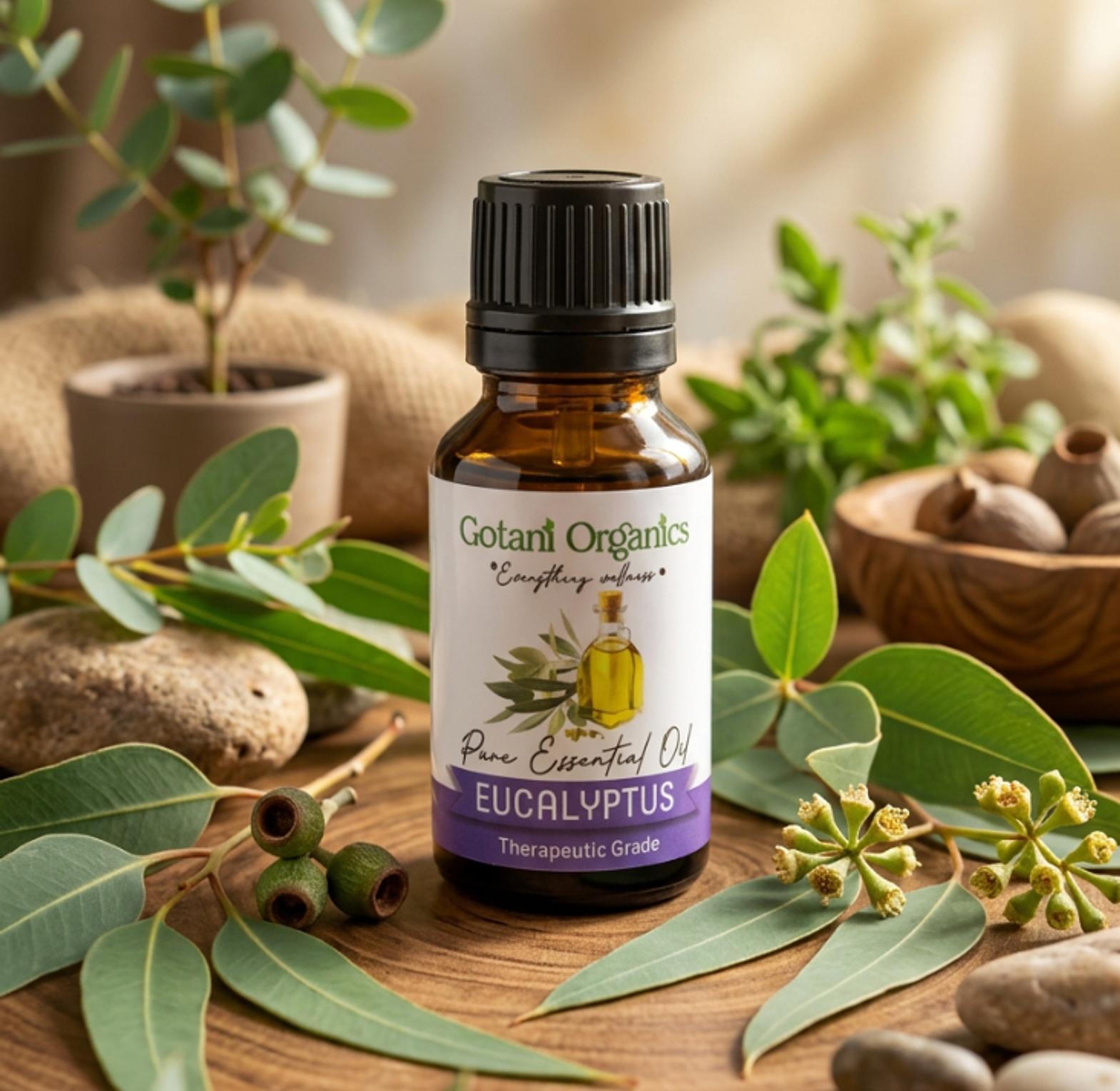 Our Eucalyptus Essential Oil offers a crisp, refreshing aroma that promotes relaxation, clarity, and natural wellness.